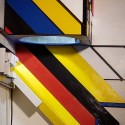 Tertiary Illumination is one of those pieces meant to soothe the mind. The “heavy weight” subjects of geo-politics left me wanting solace, so I created this. An homage to Piet Mondrian’s DeStijl movement, I also used the primary colors red, yellow, and blue, but I took it a step further and gave it a three-dimensional aspect. I found this work to be challenging in the planning phase because I wanted it to hang on the wall like a 2D DeStijl piece, but also using diagonals and a planetary/molecular look that extended his theory. I placed an LED lamp in the interior to create an illuminating experience and make it more interactive.
