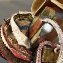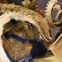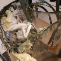 Feeding Time was created as a commentary on the plastics in the ocean, and how sea creatures are consuming it as if it were a source of food. This work isn’t meant to “knock” plastics, but our stewardship of said plastics. Plastic is one of the greatest inventions known to man; it saves countless lives since its invention and enables other technologies and processes. Our wasteful nature as humans is the problem and this work speaks of that very issue. I started by creating a crab and placing it in the middle of the work to give it dominance and to intrigue the viewer from afar. Once the viewer gets closer, they can see that it is made out of the very things hanging/floating above it. The idea is that the crab is becoming what it has consumed, plastic. The coral is made of spray foam and represents the dying marine ecology, where the plastics absorb heat from the sun and retain its energy, increasing the ambient temperature of the water around it, killing the algae within the corral. My goal was to balance the whole structure so that you don’t see it when you are up close. All you see are the creatures that have become more plastic-like.