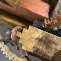 The Earth, being held up by hands from those that would consider it precious, is on a pedestal reminiscent of ancient times when concerns of global pollution and carbon dioxide was unheard of. Both sides of the blade have writing on them, one side says in Latin “Vincere Est Desperire”, translated to mean “Victory through Destruction”. This is the premise that humanity is conquering the world through innocuous means; single-use plastics, fertilization run-off, carbon emissions from automobiles, manufacturing plants, and cow farts, just to name a few. Our thoughtful ignorance has most assuredly killed us unless we change how we “see” and treat our garbage in the near future.