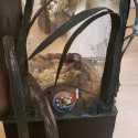 I used a half globe instead a whole because I envisioned the tentacles wrapping around like they do and also to allow for easier mounting on a wall. I wanted to also give the creature sub-dominance, giving it a parasitic feel. I used a color palette that I felt was ominous and unpleasant to view for the creature. Red for blood, black and white for a deathly pallor, and gold sheen for duplicity. The earth’s colors were meant to represent a dying world, where green and healthy has disappeared. One of the many challenges I experienced was creating something that would resonate with people and move them to recognize the jeopardy we, and future generations, all face.