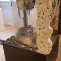 Feeding Time was created as a commentary on the plastics in the ocean, and how sea creatures are consuming it as if it were a source of food. This work isn’t meant to “knock” plastics, but our stewardship of said plastics. Plastic is one of the greatest inventions known to man; it saves countless lives since its invention and enables other technologies and processes. Our wasteful nature as humans is the problem and this work speaks of that very issue. I started by creating a crab and placing it in the middle of the work to give it dominance and to intrigue the viewer from afar. Once the viewer gets closer, they can see that it is made out of the very things hanging/floating above it. The idea is that the crab is becoming what it has consumed, plastic. The coral is made of spray foam and represents the dying marine ecology, where the plastics absorb heat from the sun and retain its energy, increasing the ambient temperature of the water around it, killing the algae within the corral. My goal was to balance the whole structure so that you don’t see it when you are up close. All you see are the creatures that have become more plastic-like.